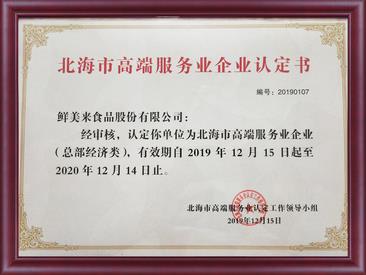 2019北海市高端服务业企业认定书 -