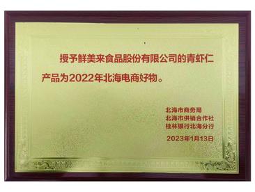 授予鲜美来青虾仁为2022年北海电商好物