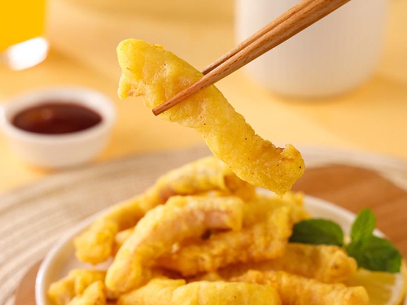 • 产品特点:整块鱼肉切条,非鱼糜,去骨去刺;无需解冻,直接烹制,食用方便,外酥里嫩